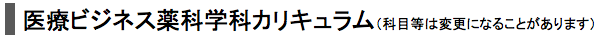 | 情報薬学コース | 医療ビジネス薬科学概論 | 医療経営概論 | ||||