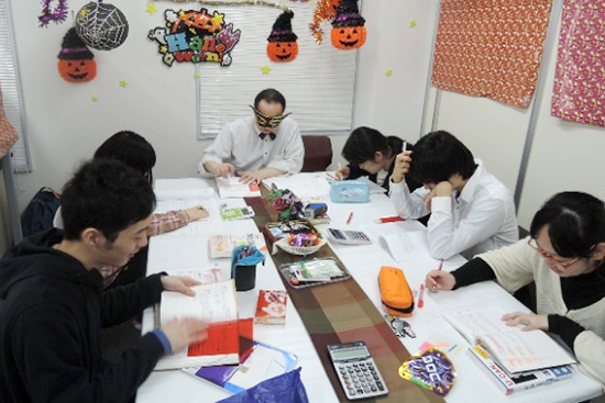 ちょうど土曜日がハロウィーンと重なり、参加者が協力して飾り付けをして勉強を開始。
