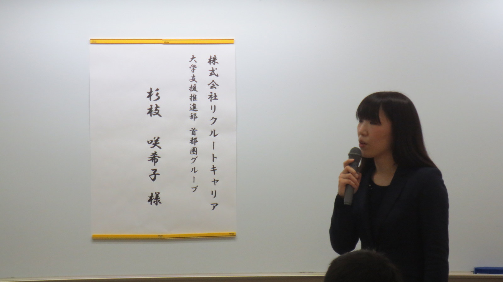 2月9日(火)さいたまキャンパス講義棟2・214教室において、スポーツ薬学コースの3年生を対象に就職ガイダンスを開催しました。講師としてお招きした、株式会社リクルートキャリア 大学支援推進部 首都圏グループ 杉枝咲希子氏より『就活スタート目前!今やる就活準備』というテーマでお話していただきました。