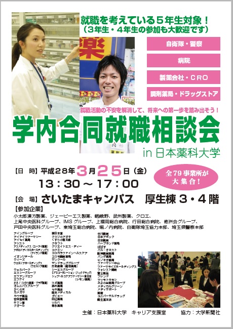 | 4月~ | 就職活動(製薬会社等一部の企業は1月頃からスタート) |