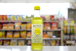 そこで、秩父産の天然林であるキハダをなんとか有効活用できないか、樹液生産者組合と本学、これに地元飲料会社が加わり、キハダプロジェクトを新規に立ち上げ、知恵を出し合い協議を重ねました。キハダの苦さは、エグ味や渋味の少ない比較的「スッキリ」とした味覚を与えます。そこで、この特徴的な苦さに着目し、サイダーを作ってみてはということになりました。サイダーはそもそも「甘いいもの」というのが既成概念ですが、これを逆手を取って「スッキリとした苦さ」を売りにすることは、ユニークではないだろうかというものです。キハダは一方で、医薬品原料でもあり、飲料として開発をするには旧薬事法(医薬品、医療機器等の品質、有効性及び安全性の確保等に関する法律)の壁があります。プロジェクトでは、埼玉県薬務課とも何度も交渉、協議を重ね、きちんとした法令遵守(薬効をうたわない、あくまで苦味としての添加物とすること)と管理の上販売してもよいという許可を得て製品化にこぎつけました。