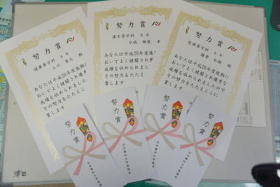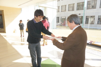 1月28日、平成27年度後期努力賞の表彰式を実施し、成績上位10位までの学生さんに賞状と副賞を授与いたしました。今回は、これから国家試験、卒業と忙しくなる6年生を先行して表彰いたしました。皆さんおめでとうございます。1年生から5年生は、4月に表彰式を実施します。発表までもう少しお待ちください。