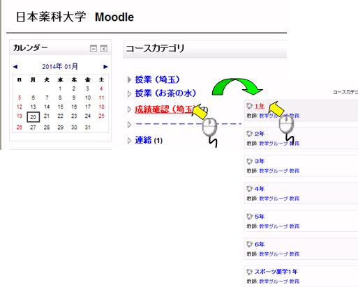 コースカテゴリの「成績確認(埼玉)」をクリック後、該当学年を選択する |