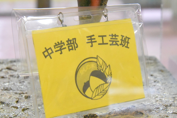 贈り物の手工芸班の生徒が作成されたネームストラップと携帯ストラップは本部棟のエントランスに装飾させていただきました。